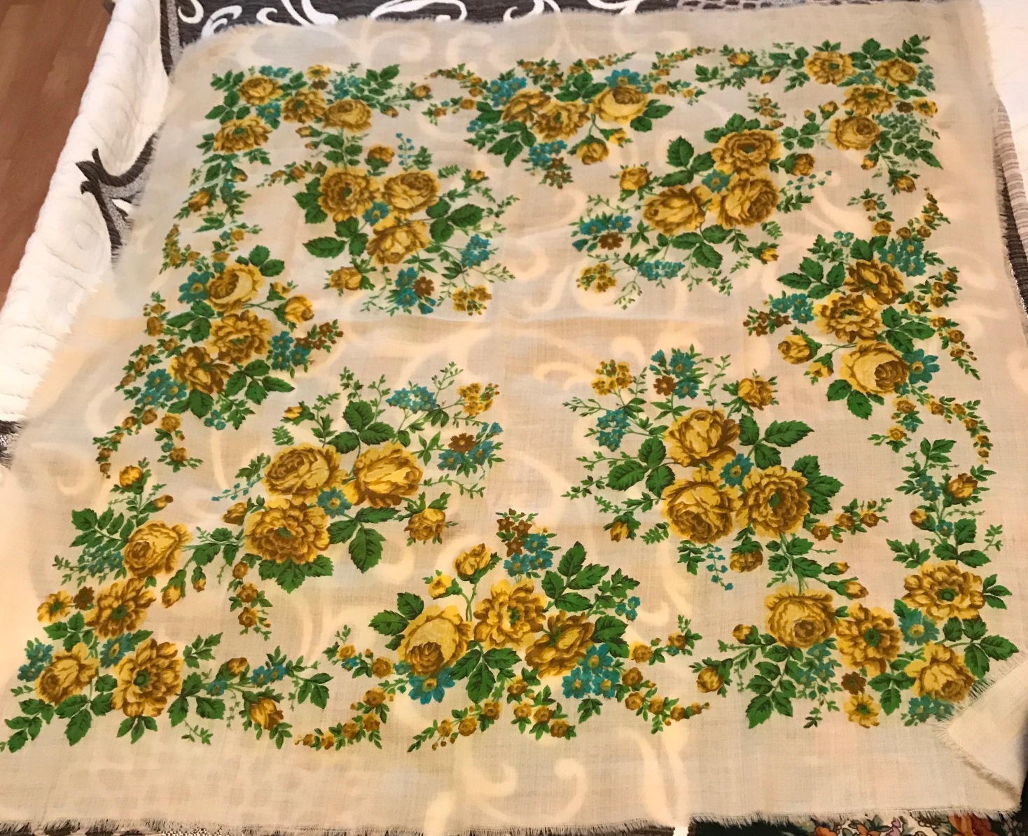 Сегодня разбирали бабушкин в прямом смысле сундук (бабушка ушла от нас...) и нашли три платочка. Один - Золотые листья в оливковой гамме. Второй тоже опознала, нашла здесь, 169 номер из каталога 1996-97. А вот третий, светлый, никак не найду. Помогите, пожалуйста.