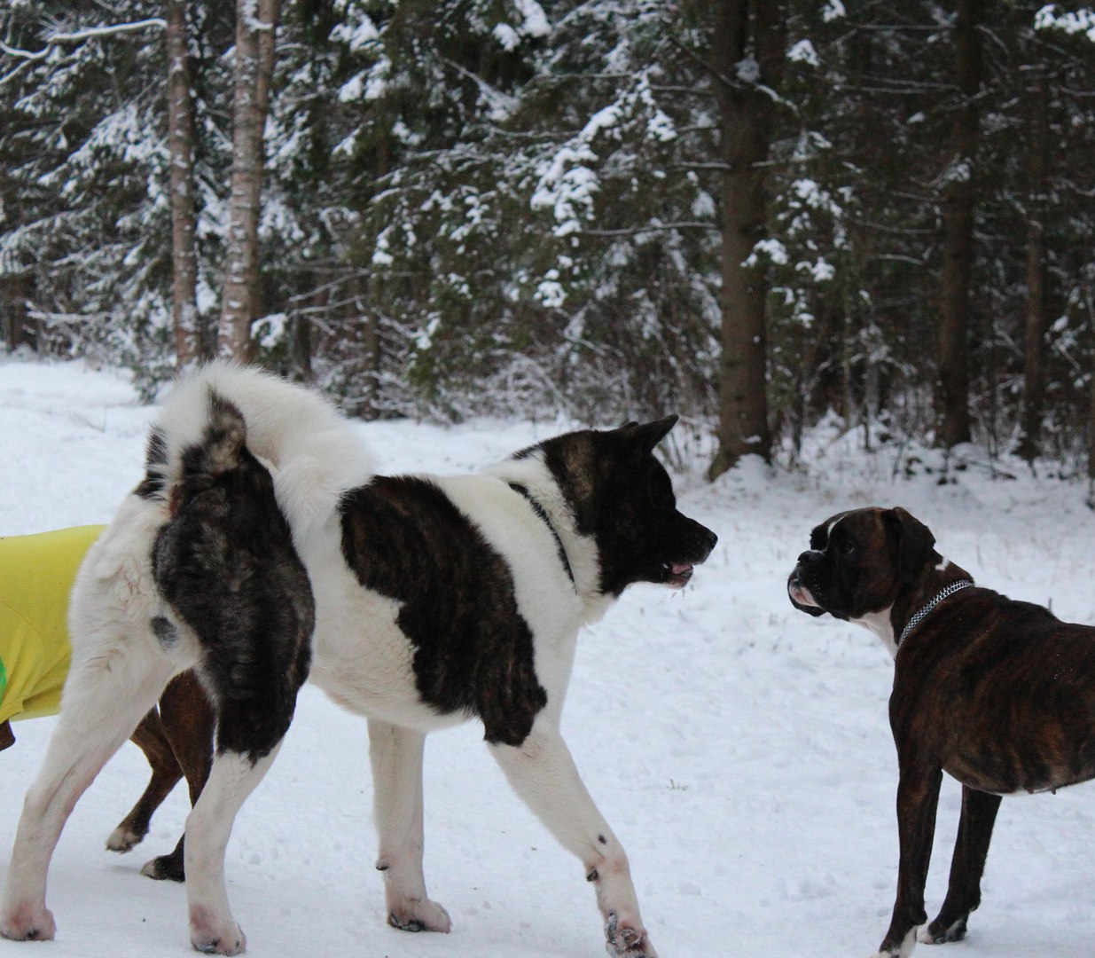 Собака у меня одна, но мы устраиваем, по возможности, совместные выгулы в пригороде с "детьми" Тильды и их хозяевами.