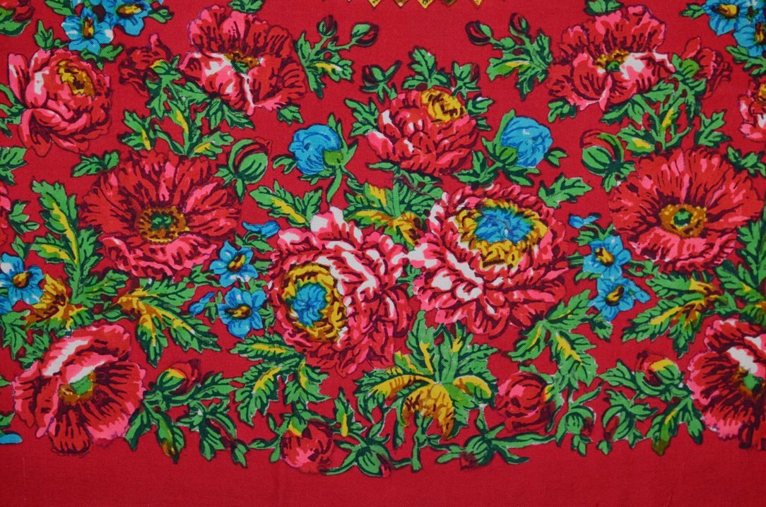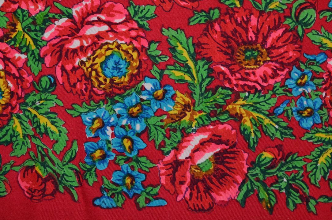 Нил Постигов, похоже, что оригинальная ручная набойка. Шаль уплотненная, 150 см на 150 см.