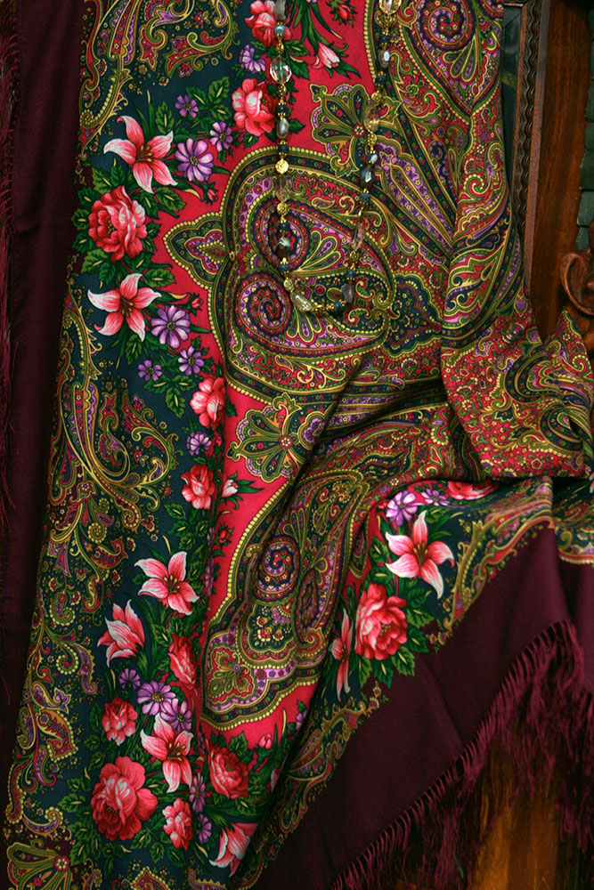 (Оказались рядом два платка, вишнёвый цвет совпадает на них.)