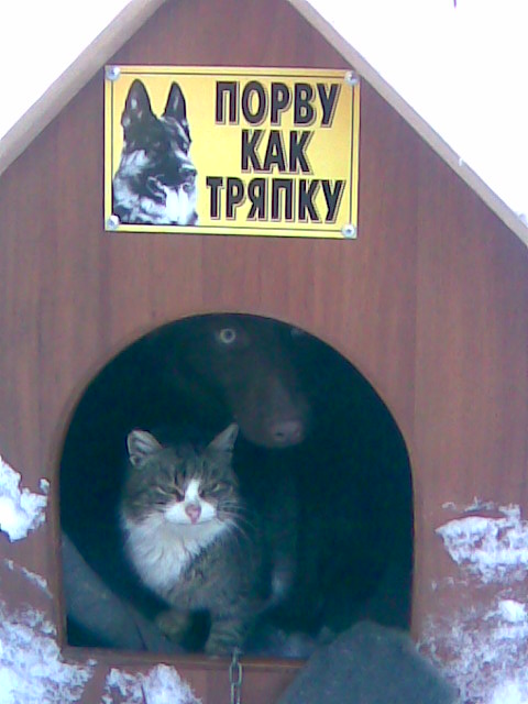 Жил-был щенок. Точнее, их было 16 - 13 черненьких и 3 рыженьких. Мам у них было две, а еще то ли дядька, то ли папочка с одним глазом. Мой герой был в два раза больше остальных, да еще и лохматый. Когда щенкам было около месяца, и мамки уже стали их выводить "на люди", однажды приехала машина. Малыши попрятались, а мамки нет. И мамок убили. Дядька (или папа?) тоже сумел спрятаться. И началась у малышей сиротская жизнь. Утром приходили люди, наливали молока, кидали туда хлеб, перепадала и кашка, иногда везло - приносили макарон с мясом и всякое такое. Одноглазый воспитатель смирно стоял в стороне, пуская слюни, не подходил, если только ему персонально не подкидывали косточку. Только он из рук не брал, перестал доверять людям. Потом начался мор. Почти каждый день кто-то из щенков не находил сил подойти к кормушке, лежал несколько дней и умирал. Иногда сильно плакал от болей. Чумка - проклятие тех мест. И осталось их пятеро - Одноглазый, рыжий лохматик и три черненьких. Однажды опять приехали люди. Рыжий подбежал с радостью, его взяли в руки и посадили в машину. И повезли. По дороге гладили, ласкали и все время называли Потапом. Привезли куда-то в новые края, где его встретили куры и большой кот. И стал Потап жить в своем доме, привык и к коту, и к ошейнику, и к цепи. Наверное, только в своих щенячьих снах вспоминал все, что было. А однажды к нему в дом забрел какой-то кот. Ничей, совсем бездомный. Теперь они живут в одной будке, вместе спят, вместе едят. А его братья-сестры остались на прежнем месте, люди по-прежнему носят им разные вкусные вещи, за что они благодарят их, как могут. Такая вот история.