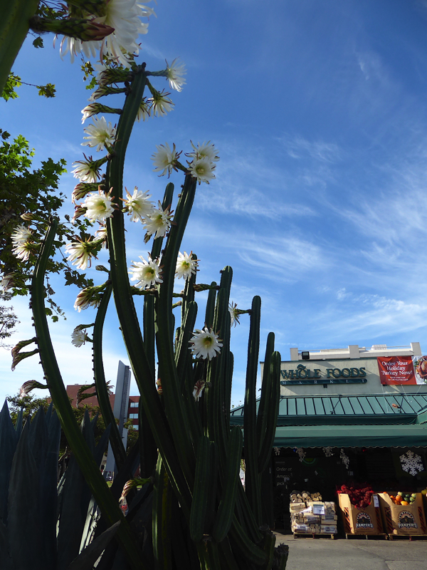 Последний день уходящего 2017-го, гигантский кактус у магазина на бульваре вблизи от нашего дома. Росту в нем по меньшей мере метра 4... Цветет часто, но к празднику выдал настоящий фейерверк!