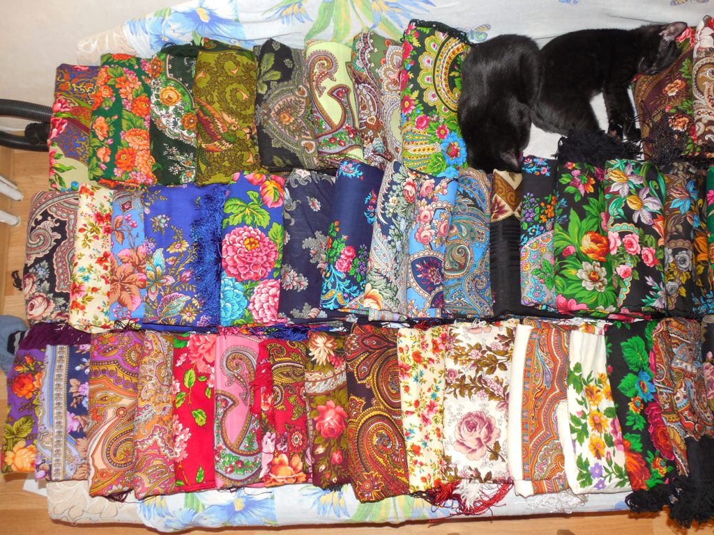 Люблю чернопольные в так называемом традиционном окрасе.)) Все платки 18-го колорита: Медальоны, Павловские розы, Филигрань, Лабзинский, Цветочная корзиночка (сверху), Маков цвет (снизу)