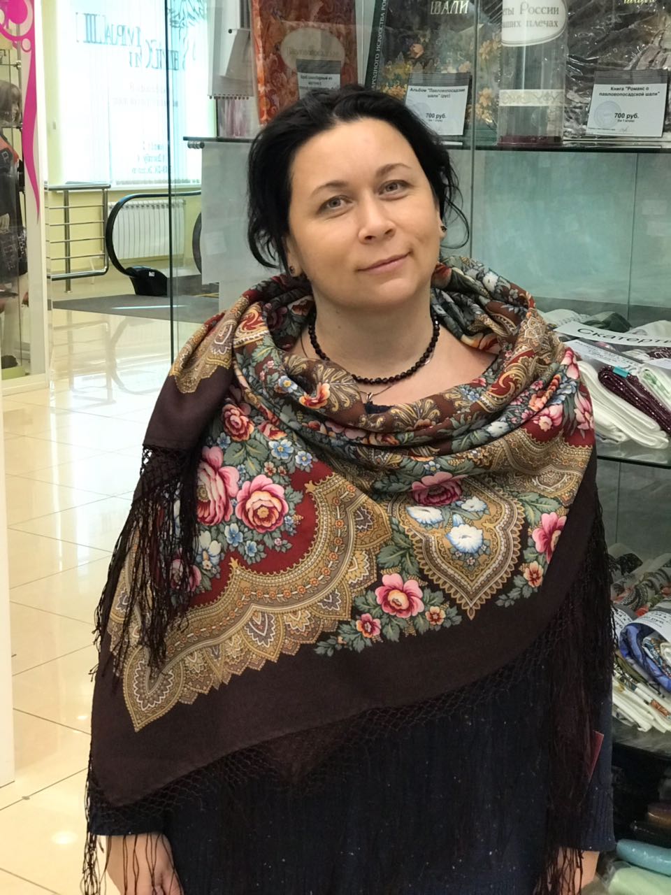 Демонстрируем ношение платков и шалей.