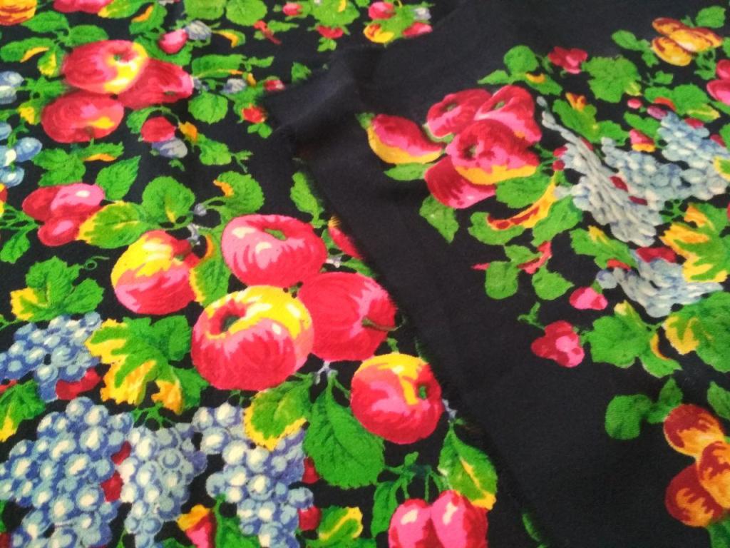 Фото этого платка я показывала несколькими страницами ранее, но тогда даже и думала что он приедет ко мне на день рождения в подарок от замечательного человека. Чудо- рисунок! Залитый солнцем сад. И чего там только нет!..