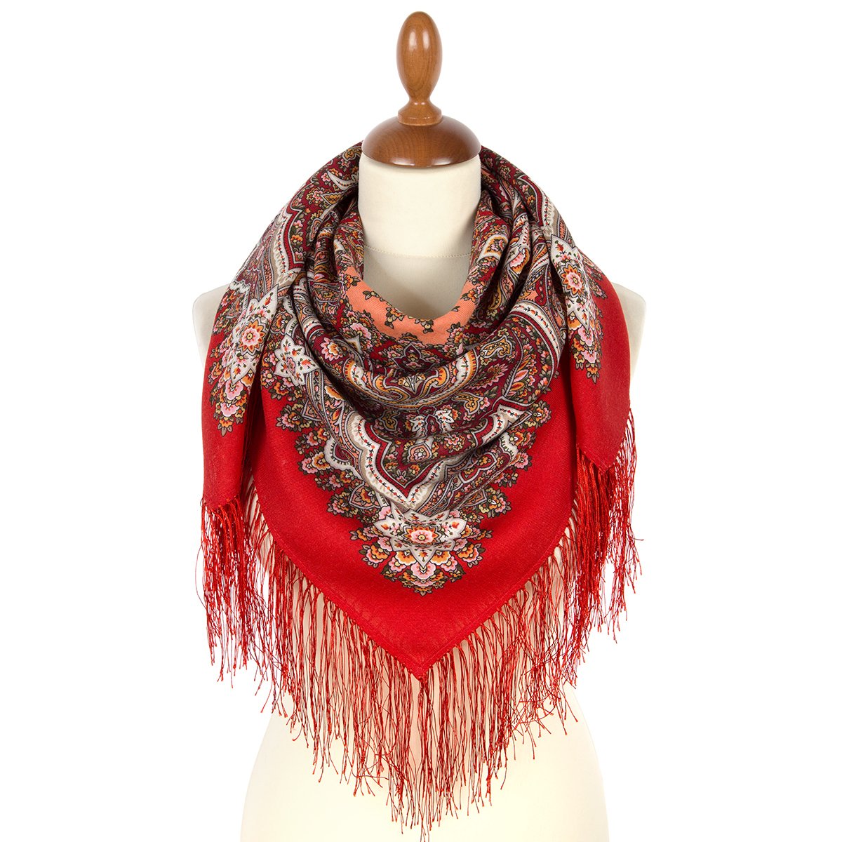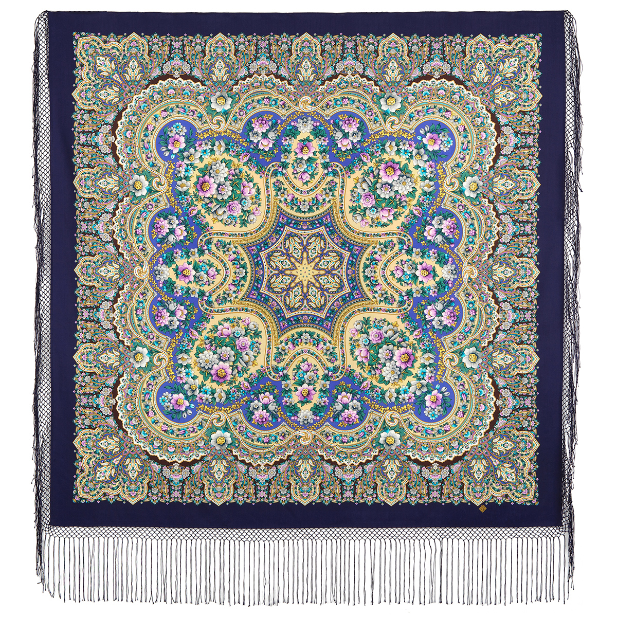 Многоцветная шаль из уплотненной шерстяной ткани с шелковой бахромой, 148х148см