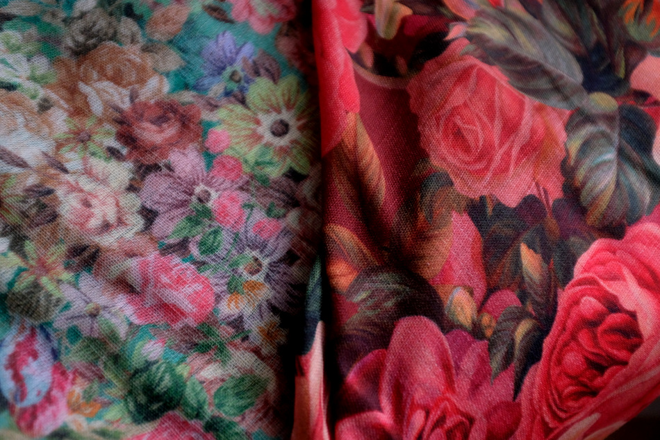 А это тот платочек, который был из самой первой партии. Потом, если помните, они изчезли из продажи и появились на другой ткани. Я видела в магазине этот же платок уже на новой ткани - он стал темнее, насыщеннее. Мой совсем бледненький, "застиранный", но мне в этом рисунке это нравится.