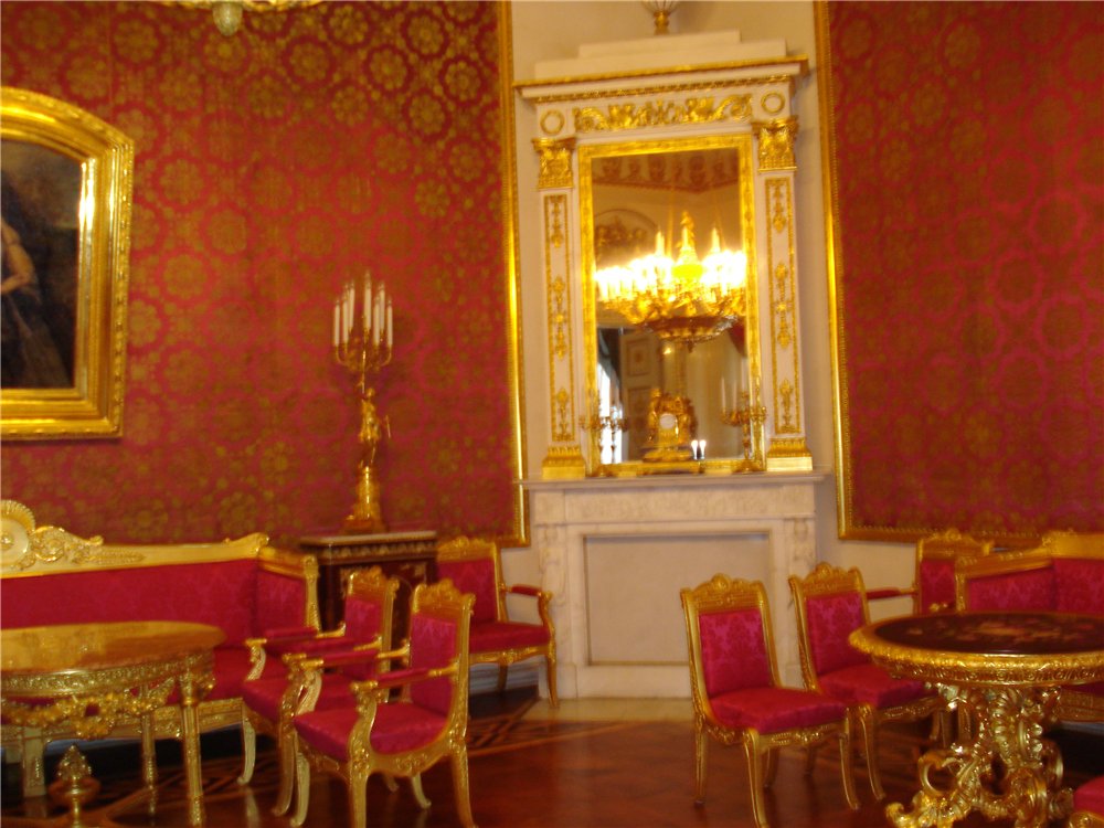 Красная гостиная, еще её называли Золотой или Императорской, самая яркая, но мои две фотки не передают всей красоты и великолепия этой гостиной.