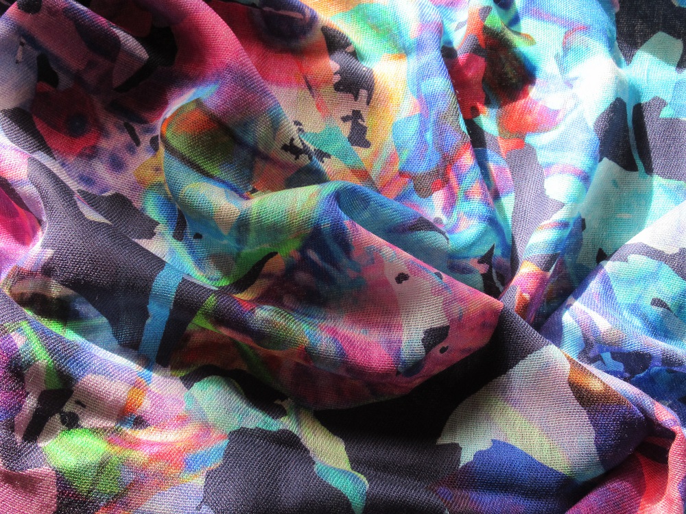 Красивый платочек, там такие интересны переливы синего, голубово, с вкрапинами, красного, фиолетового, розового. Как бы много цетов намешано, но платочек интересно и гармонично смотритса. И тканъ такая мягкая, шелковистая, тактилъно приятная.