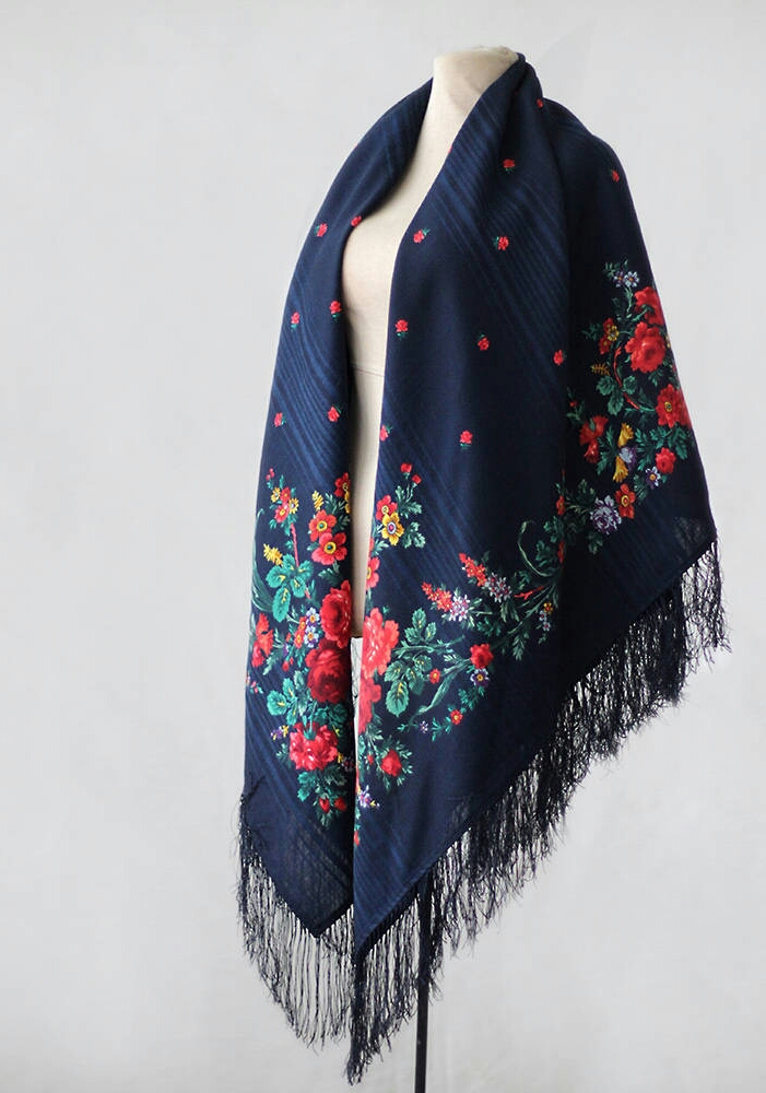Подмосковные вечера 1293- 1, 7, 14, 17 1293. ПОДМОСКОВНЫЕ ВЕЧЕРА. Старинный рисунок 1885 г. восстановила Валерия Фадеева. Платок шерстяной 146х146.