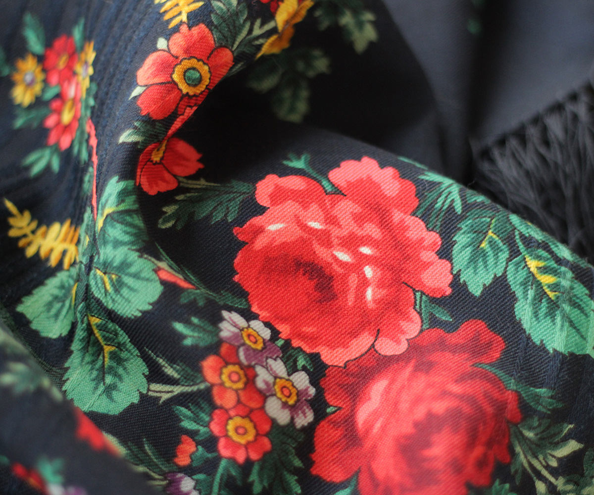Подмосковные вечера 1293- 1, 7, 14, 17 1293. ПОДМОСКОВНЫЕ ВЕЧЕРА. Старинный рисунок 1885 г. восстановила Валерия Фадеева. Платок шерстяной 146х146.