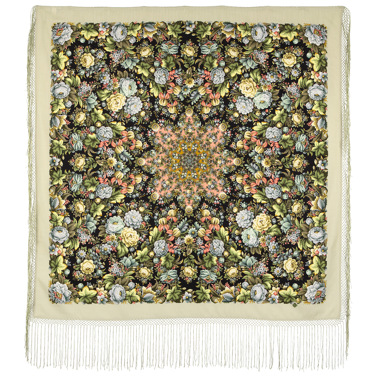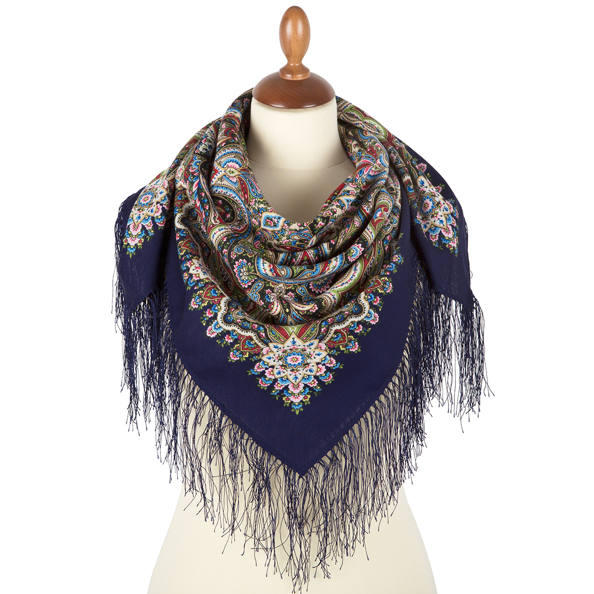 Многоцветная шаль из уплотненной шерстяной ткани с шелковой бахромой, 148х148см