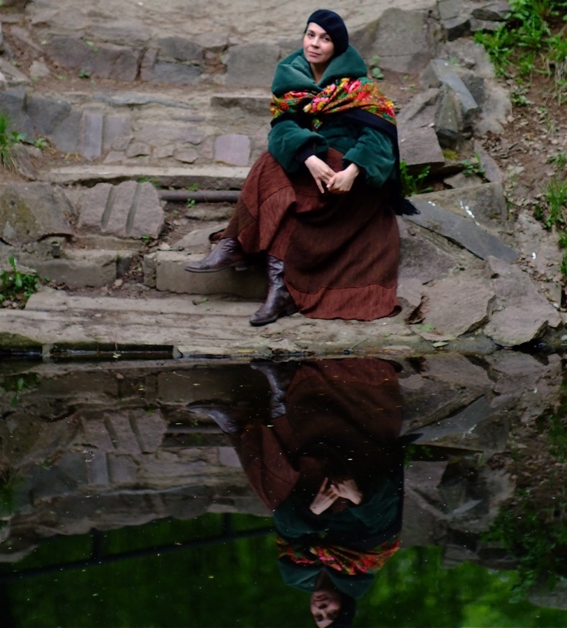 А мне сразу вспомнились картины художников 19 века. Добро, очень красиво! Восхитительно! Особенно в сочетании с пейзажем! Очень органично смотрится платок! Русскя красавица! Ждем ещё ваших работ, примеркой это не назовешь.