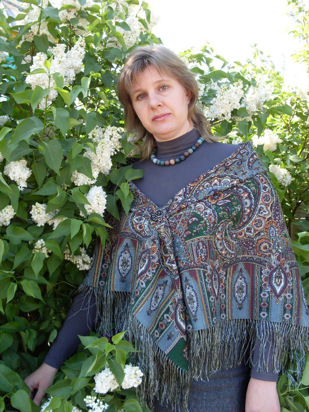 Спасибо, Varezhka! Я вот тоже с большим удовольствием отмечаю, что примерять и показывать стали намного больше. Смотреть на всех так приятно! Ласковый вечер , Ваш шарфик, как нежный букет на фоне сдержанного, нейтрального тона жакета. Наверное, вблизи еще приятней смотрелось. ЛЮБАВА,Такой сложный для меня платок "Лето в Павлове" (любовалась им очень, но не знала как поступить со столь крупным рисунком) Вы замечательно подали!Ваши дочери должно быть ужасно гордятся своей мамой - вы очень яркая и эффектная . Вообще,как только я начала носить шали, заметила, что первые, кто реагирует на них - дети и очень эмоционально:удивление, восторг на личиках. Вчера пошла на почту, рядом с ней ко мне две девочки лет четырех подошли и спрашивают: "А Вы куда идете?" Показываю - недалеко. "А можно и мы с Вами?" Взрослые взглядом дали добро. Пошли рядом как два розовых гриба(обе под зонтами) и стали рассказывать о своей жизни. Одна, поменьше, хрупкая такая, очень грустную историю - об умершей маме...Проводили меня, попросили завтра снова прийти. Долго махала им. Когда рассказала мужу эту историю, он спросил "А в каком платке-то была?". "В Волшебнице". "Ну ,тогда все понятно..." Думаю, и правда, детскую душу завораживает сказочный вид женщины в платке...Моя небольшая выставка сегодня - это ода всего лишь одному платку (наверно навеяно примерами рядом). Я еще не очень освоилась в разнообразных стилях и способах ношения, хотя очень хочу, и с вашей помощью обязательно освоюсь...Просто я хотела показать платок тем, кто раздумывает, кто не знает и просто тем кто любит его. Показала его и издалека и вблизи - покупая, мы не всегда представляем как это будет выглядеть. Смотрите - судите...
