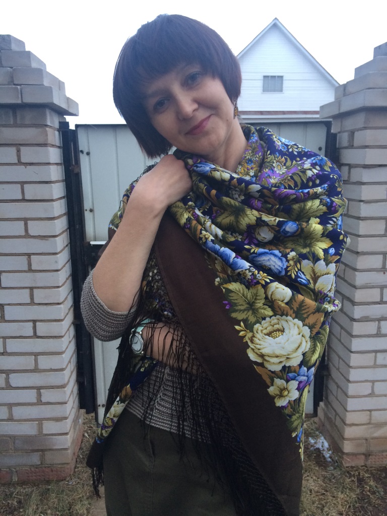 Таня Имбирь, ах, какая прелесть! И сиреневые ирисы у лица - чудо! :: ^% Все-таки - удачная вышла шаль, во всех колоритах смотрится интересно. А красивая женщина - и без макияжа красивая (без лести, факт). ^%