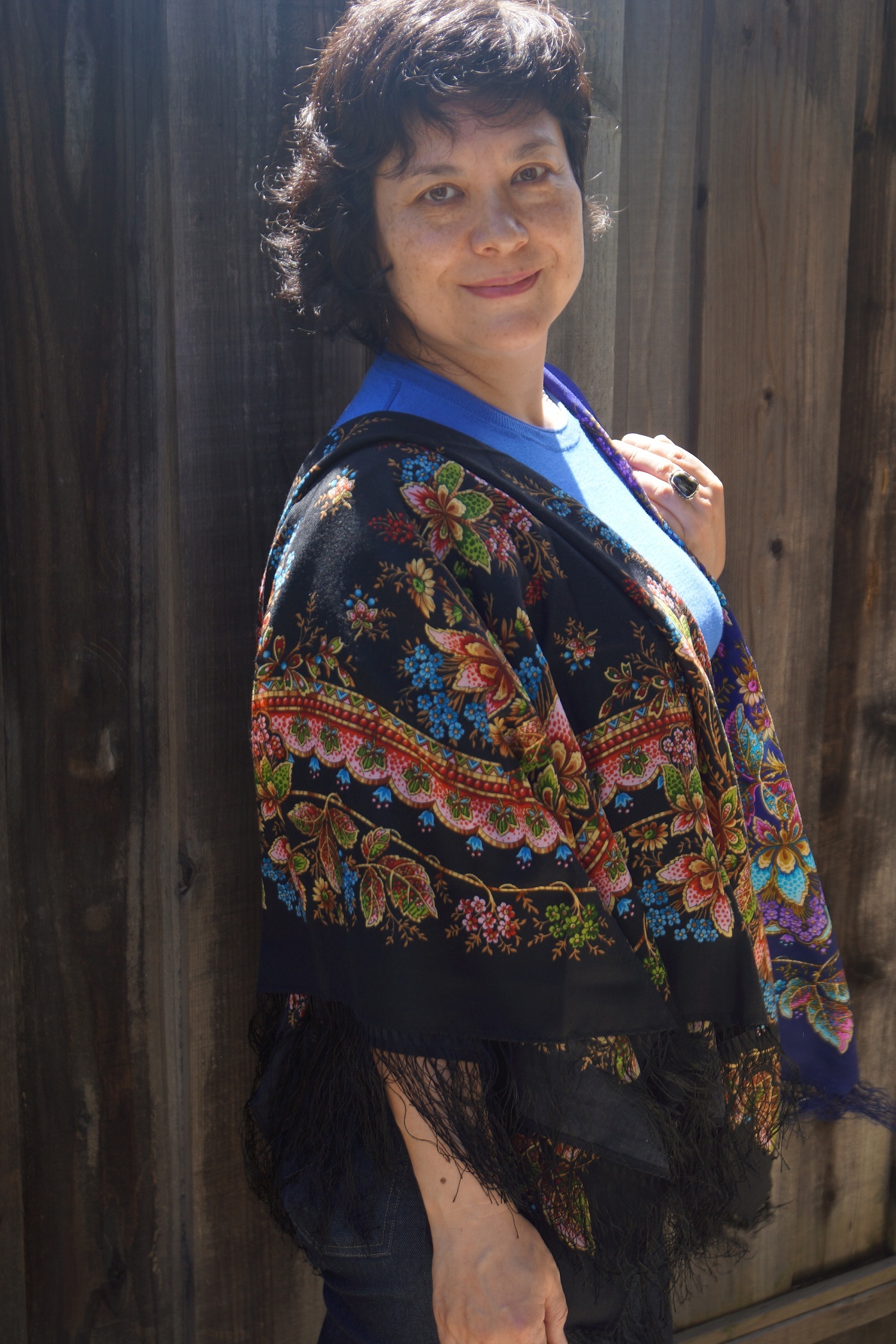 Еще у нас была намечена следующая сверхзадача - сравнить старую и новую Цыганку Азу 27. Я даже немного волновалась, но все оказалось лучше чем я думала: новую Цыганку восстановили довольно точно, с некоторыми художественными нюансами при которых выигрывает все таки старая, но при этом незаметными в шали как аксессуаре.