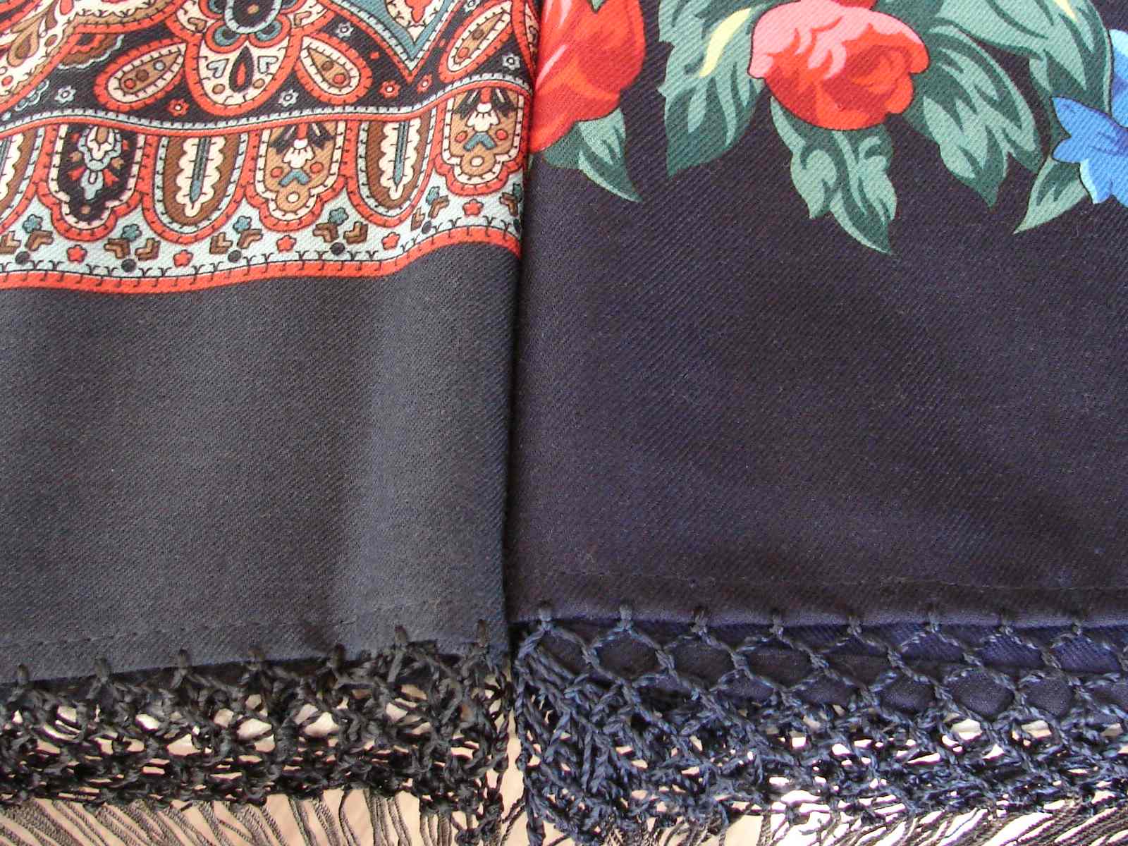 Очень хорошо видно разницу по бахроме, подобрана она в тон к кайме у обеих шалей.