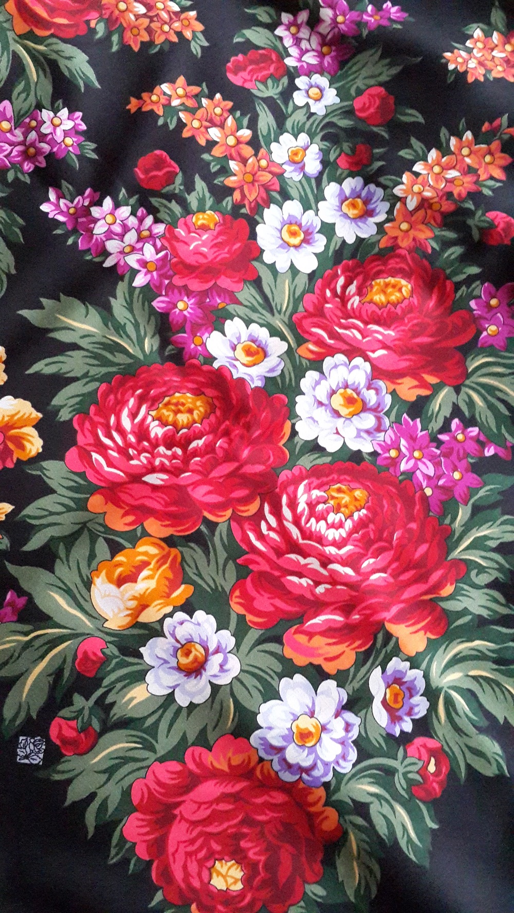 Красивая шаль. И пионы красивые, крупные. И цветы помельче - в хорошей расцветке.