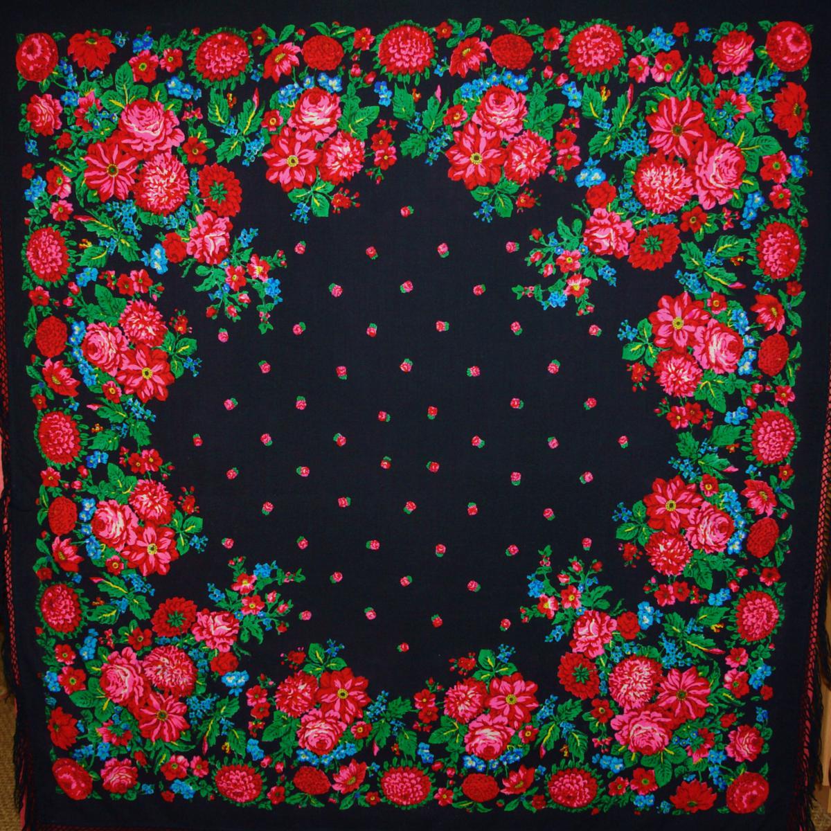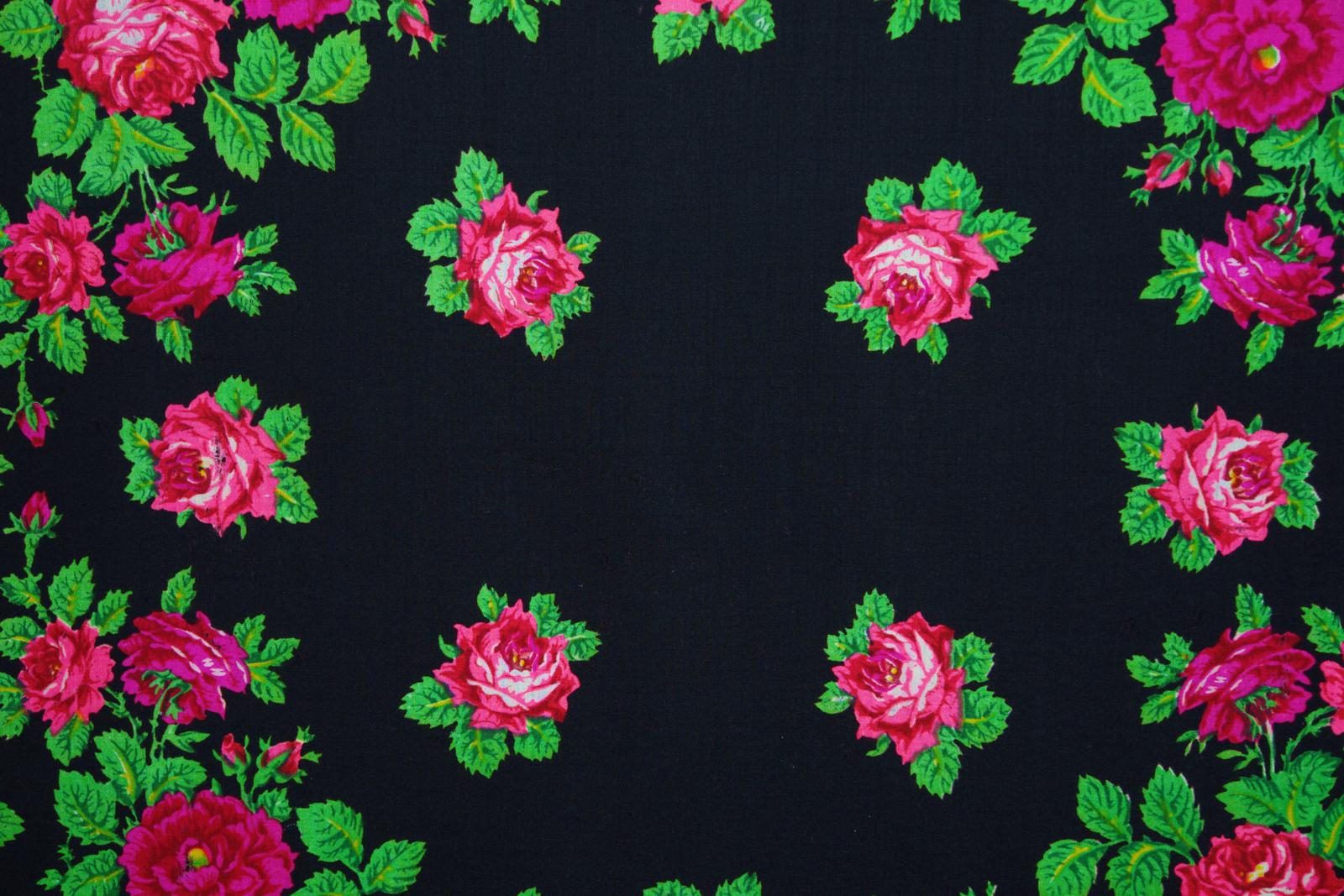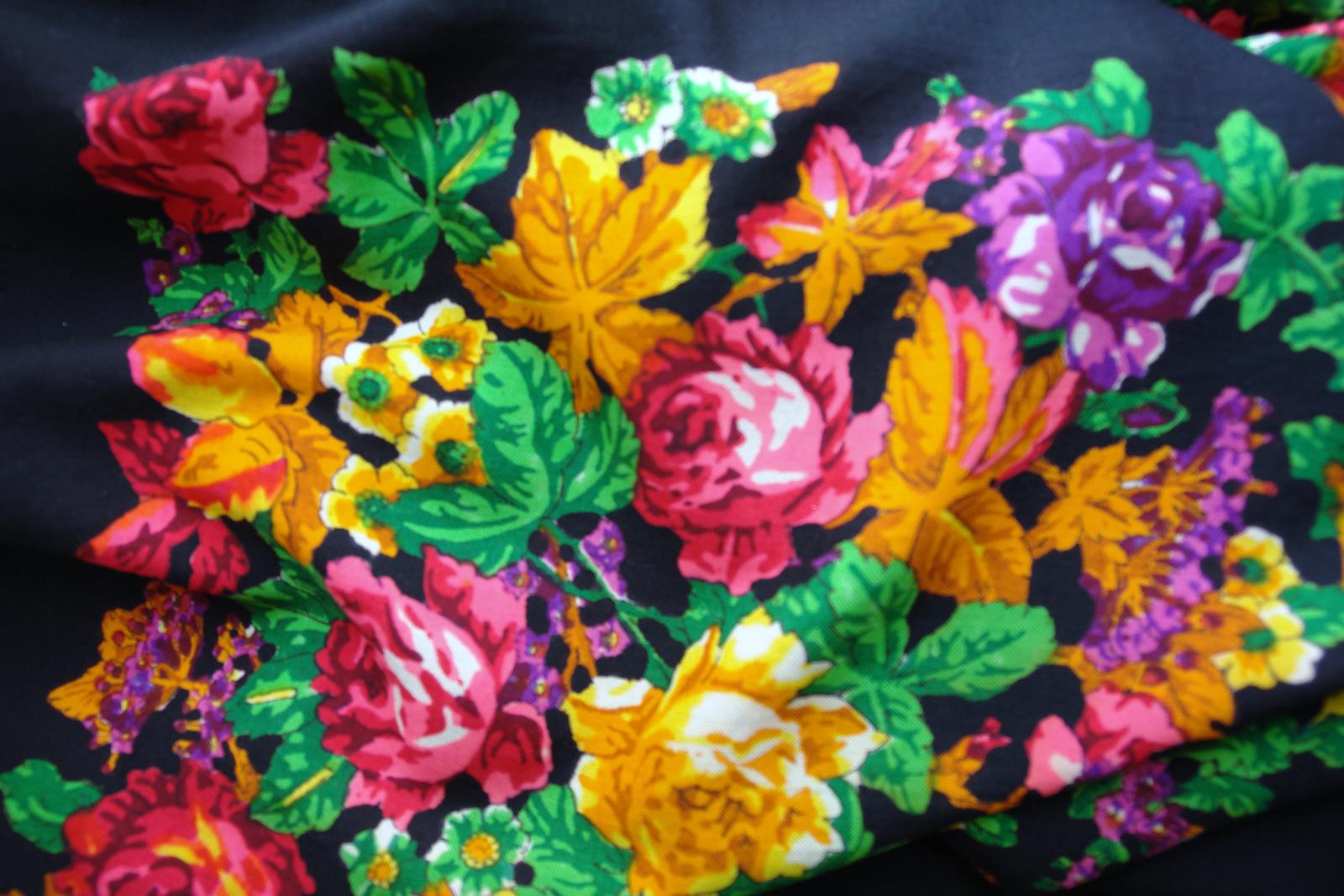 Шаль шерстяная 146х146. Цветочный мотив с розами неизвестного автора