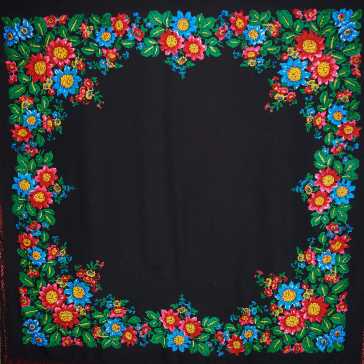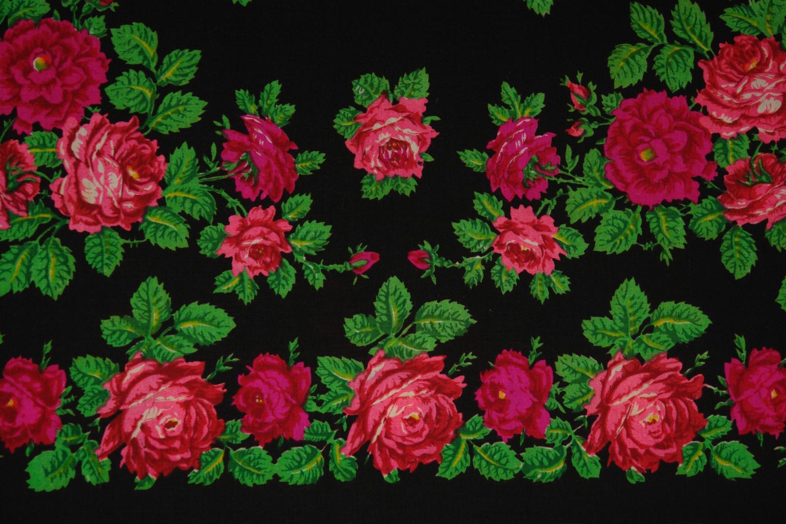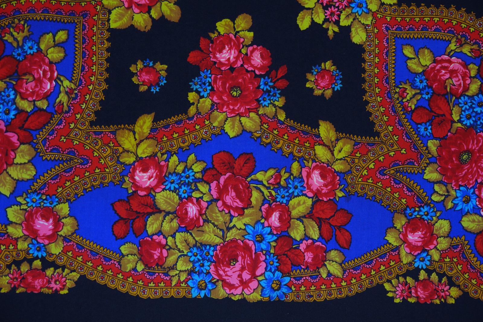 Шаль шерстяная 146х146. Цветочный мотив с розами неизвестного автора