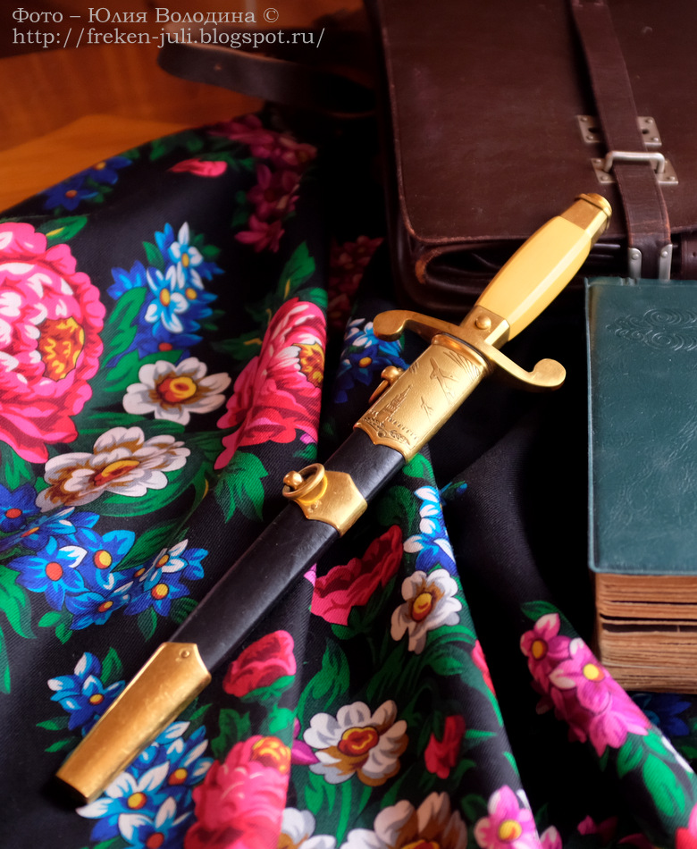 Еще кадр – воспоминание. Я в гостях у бабушки с дедушкой не в праздник, а просто так. Дед зовёт меня в маленькую кладовку в спальне. Мне уже странно и страшно – в кладовку меня не пускали, а хотелось, очень уж таинственной эта комнатка мне казалась в детстве. Дед достаёт с верхней полки в кладовке большую коробку, а в ней, в хрустящей бумаге – кортик. Сверкающий золотой звездой и крыльями эмблемы Военно-воздушных сил, наградной кортик к парадной офицерской форме деда. Я и не знала, что он у него есть!