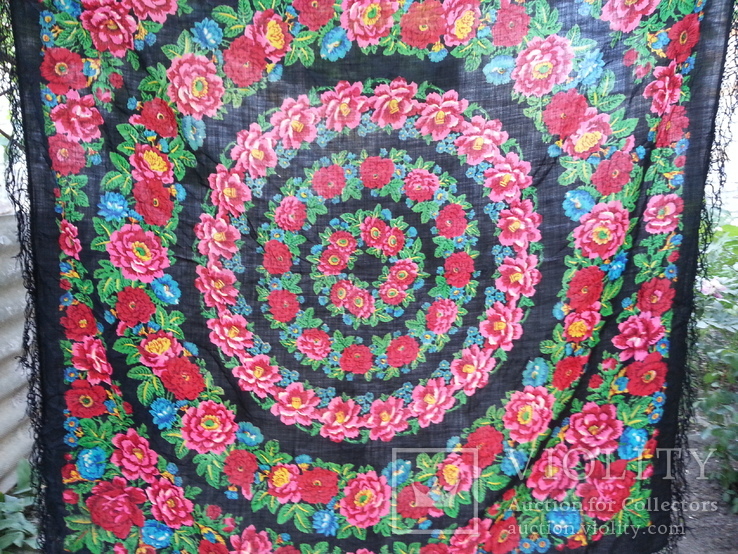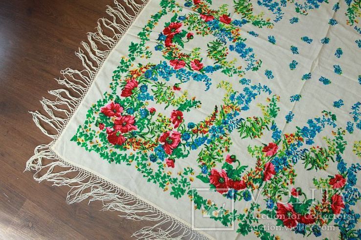 Цветочная кайма с шишечками хмеля Вторая шаль аналогичного колорита. Печать на просновках. ППР_174