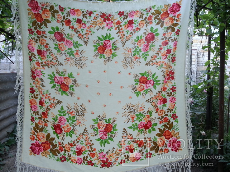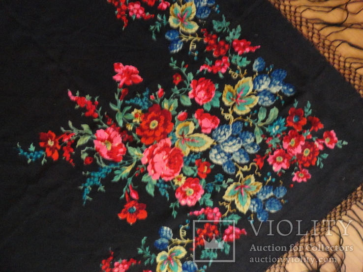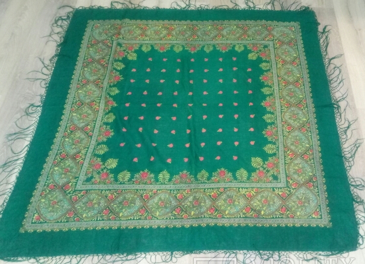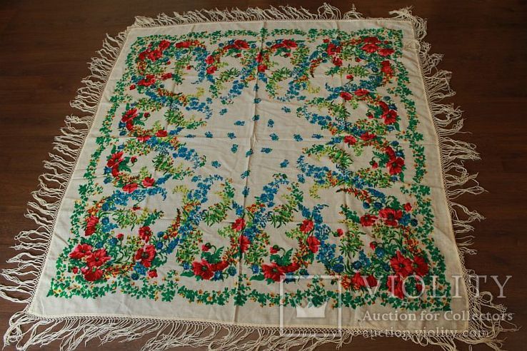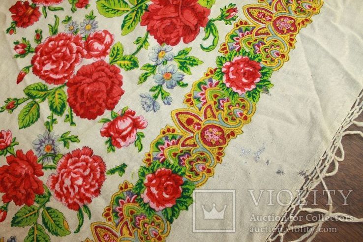 Цветочная кайма с шишечками хмеля Вторая шаль аналогичного колорита. Печать на просновках. ППР_174