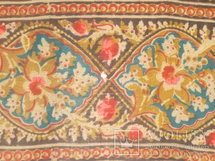 Цветовный мотив по кайме напечатан на шерстяной ткани с шёлковыми просновками