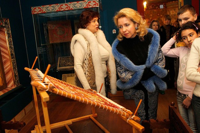 Также руке мастера принадлежит комплект из накидки, юбки и шапки в русском стиле, в котором супруга президента поздравляла воспитанников детских домов с Масленицей.
