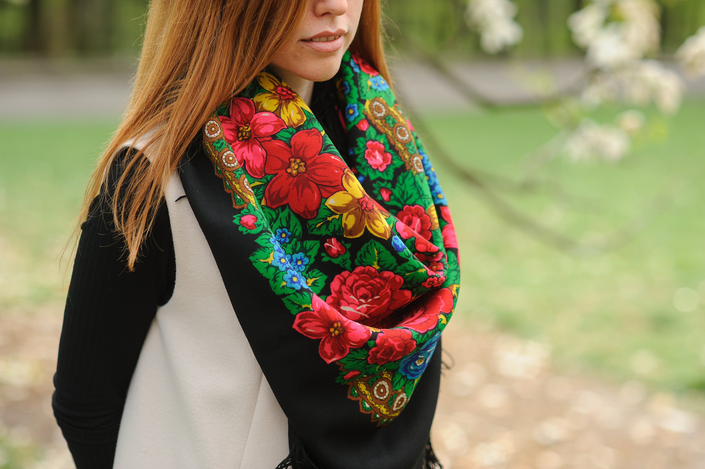И ещё один не менее красивый платок украинского производства в павловопосадском стиле