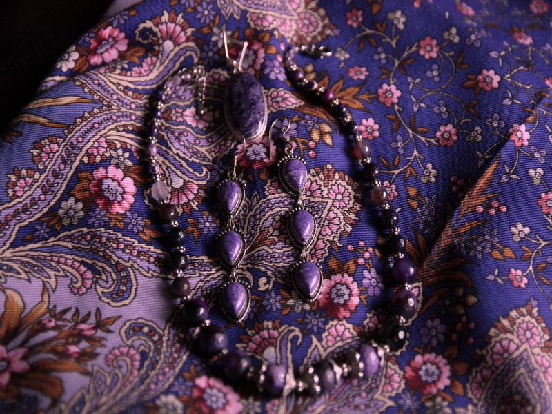 Рогнеда, очень красивые у вас чароитовые серьги и агатовое колье, идеально подходят к Миндалю.