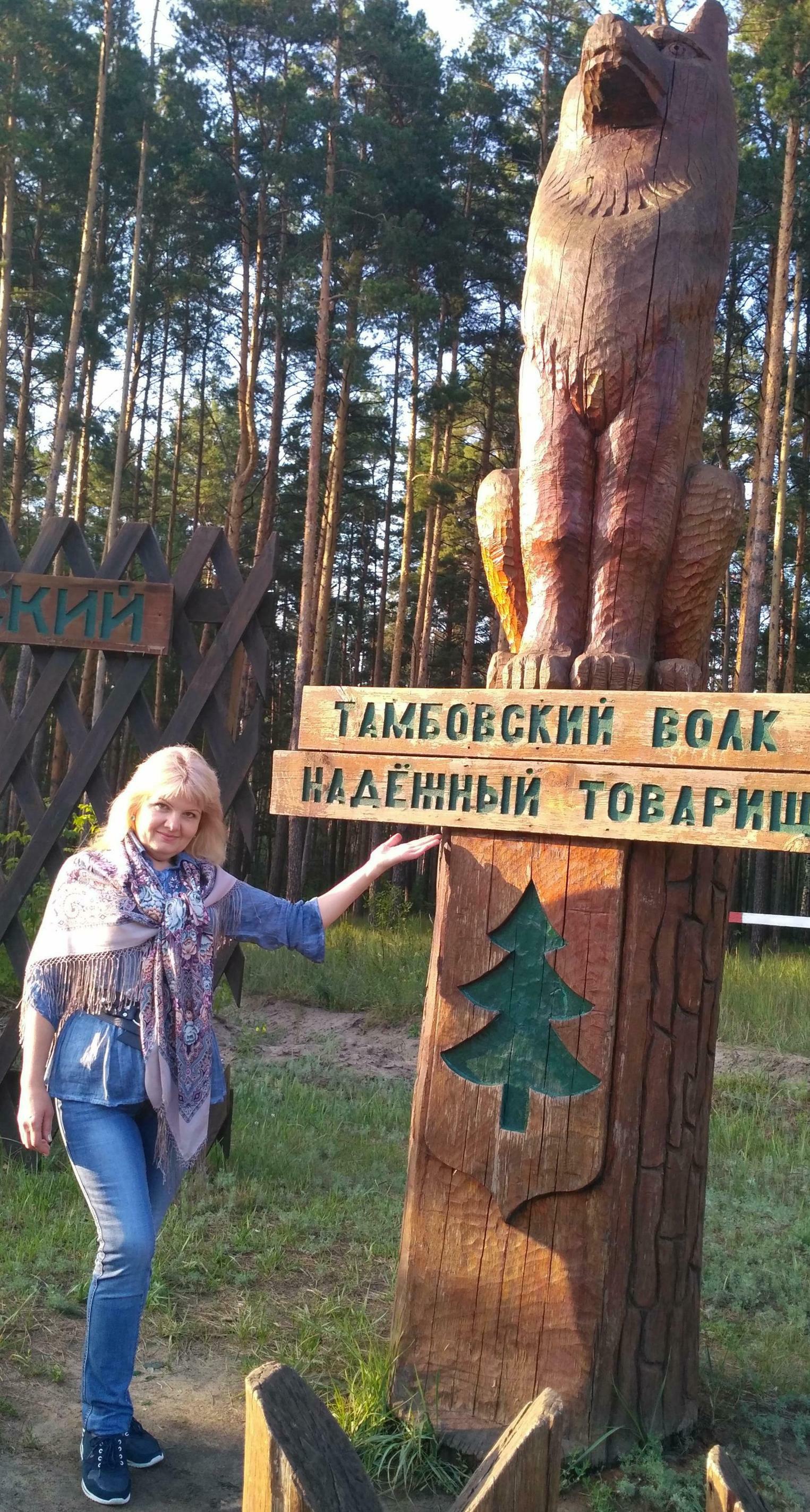 Ездили к внуку в спортивный лагерь.На вьезде в Тамбов , у Пригородного леса установлен символ Тамбовской области . А со мной были две шали.