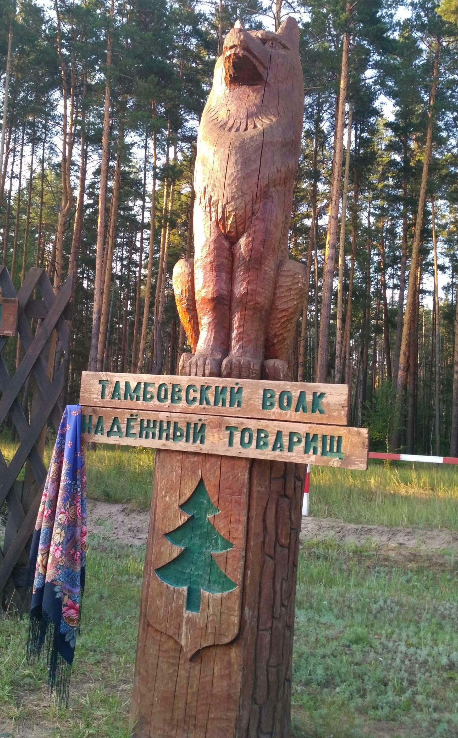 Ездили к внуку в спортивный лагерь.На вьезде в Тамбов , у Пригородного леса установлен символ Тамбовской области . А со мной были две шали.