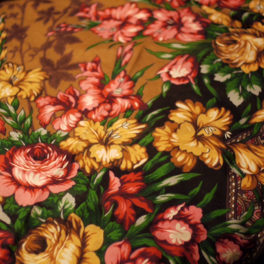 Этот платок удивил объемностью, настоящим эффектом воздуха между веткой гладиолуса и узорной каймой!