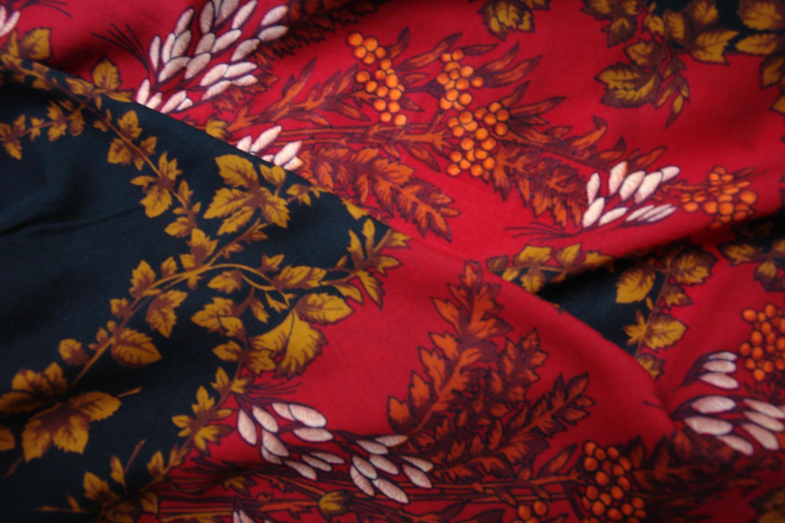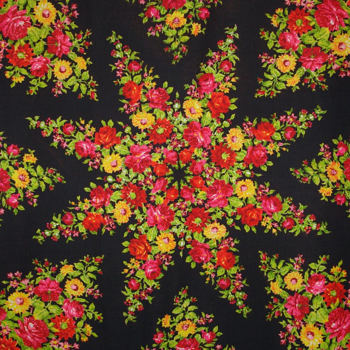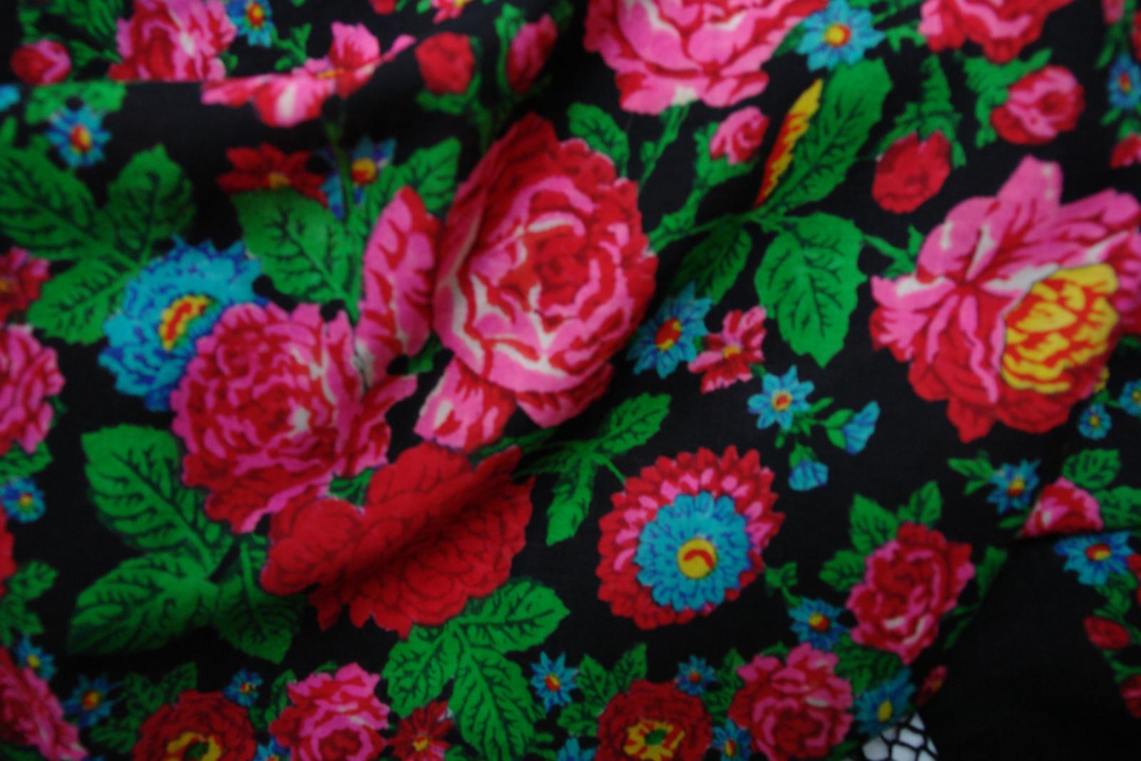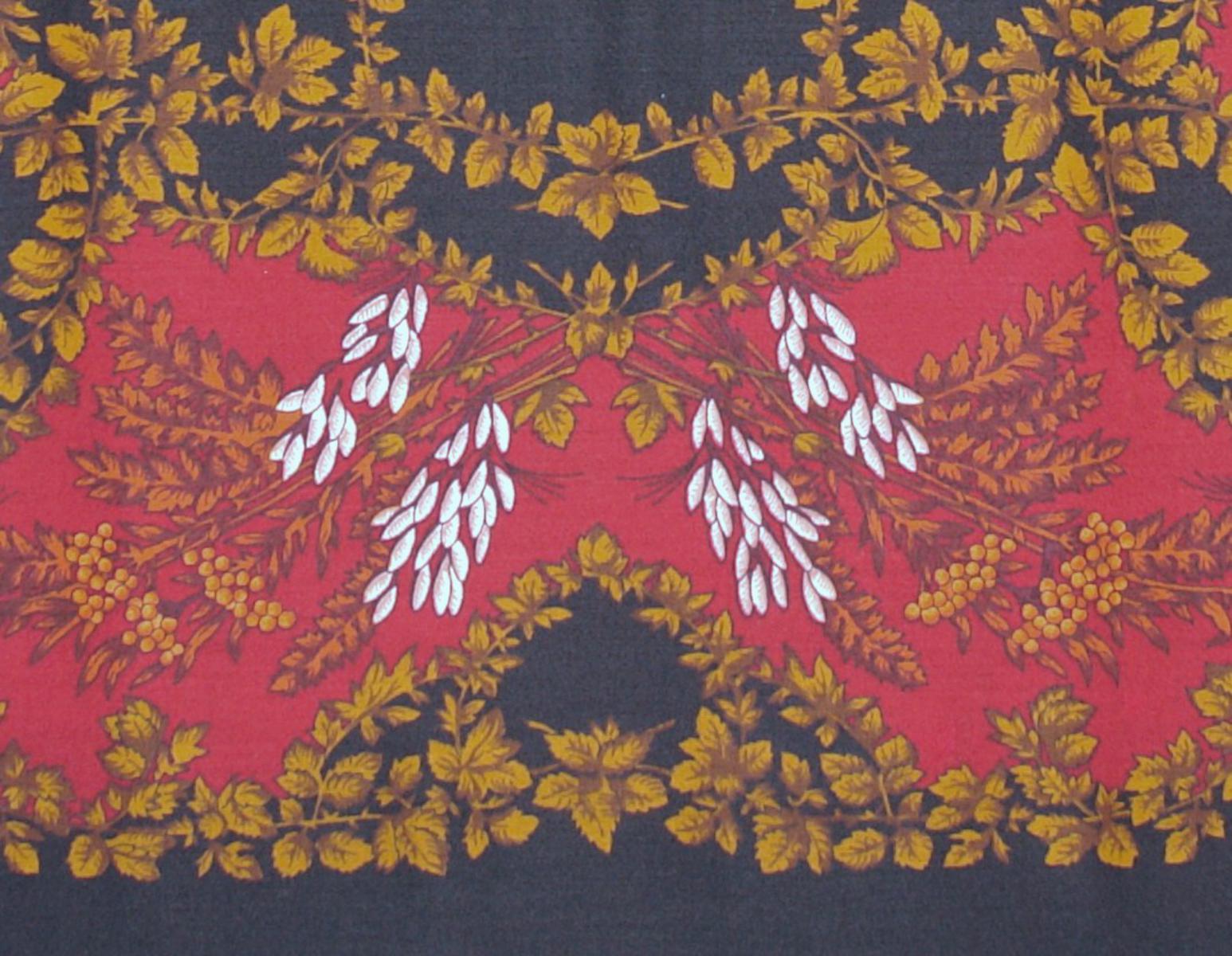 Шаль довоенной ручной набойки с цветочным мотивом по кайме