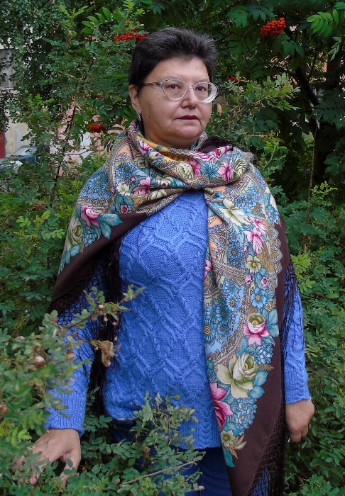Дивами соблазняете!У меня фуксическое диво пока лежит неодеванное)). Я прошу меня принять в дружное сообщество любителей и пока выхожу с одним платочком, с "Галиной", в которую почему-то сразу влюбилась по картинке и заказала. Сложная шаль, но носить буду, как мне кажется.