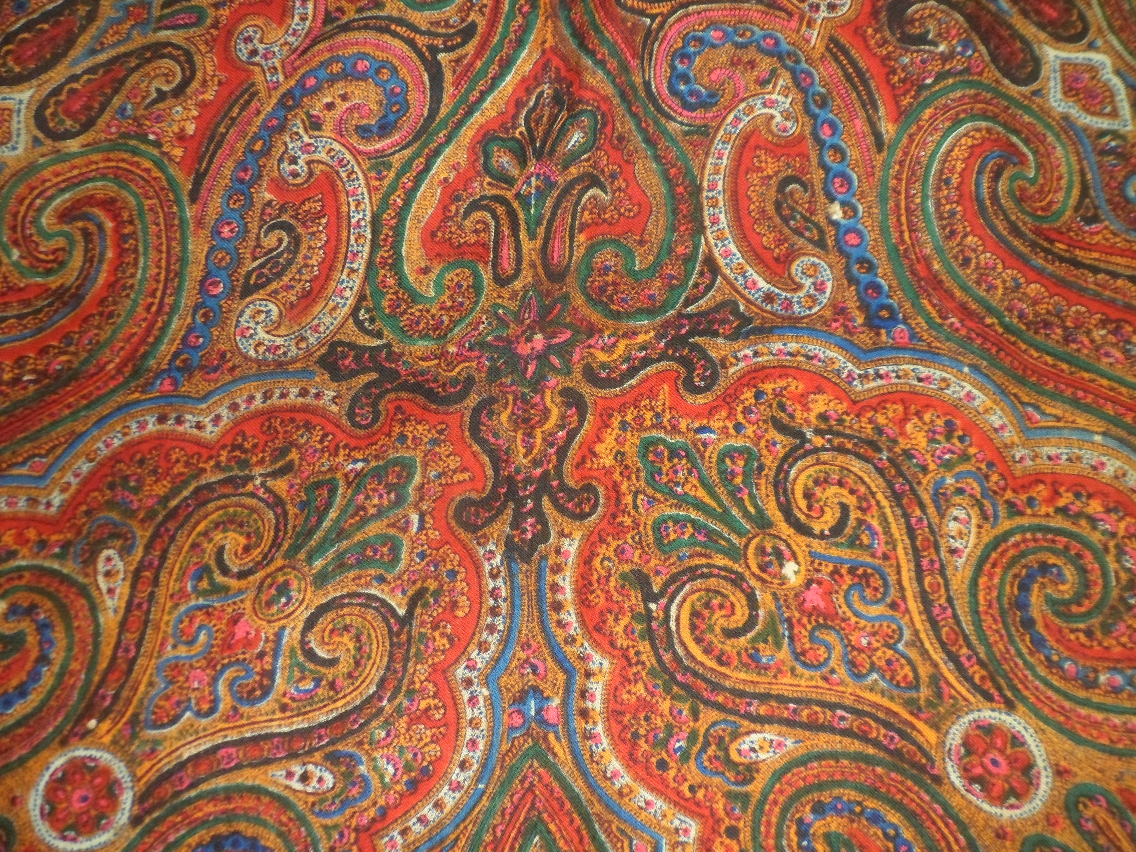 Орнаментальная шаль ручной набойки(?) 50-60 гг. Сильно раненая...