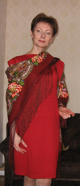 В теме "Помогите подобрать платок" я на дня спрашивала про краснопольную шаль. Чтоб именно красного цвета.