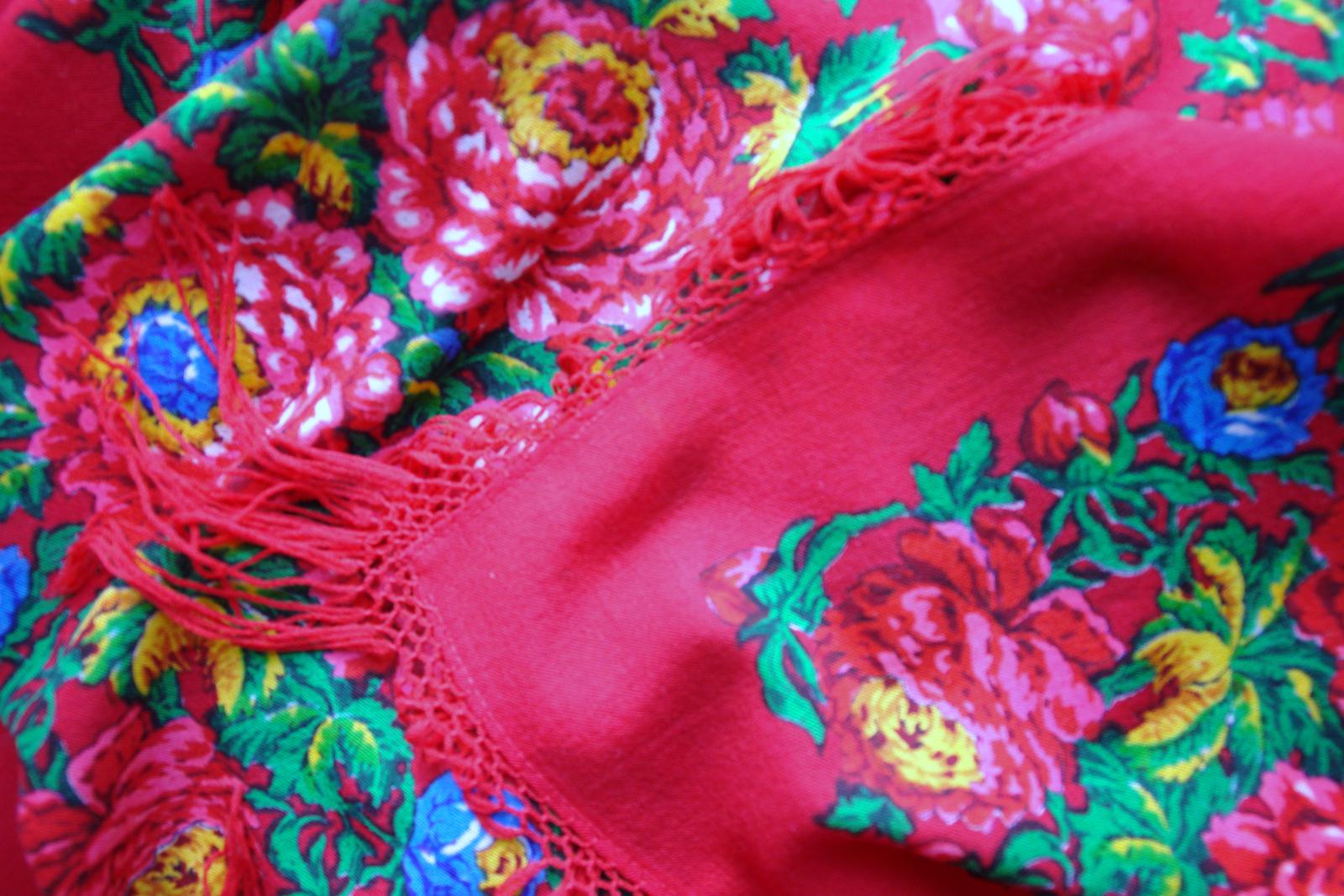 Добавлю несколько фото недавно купленного платка. Размер 125х125. Бахрому шерстяную я сняла.