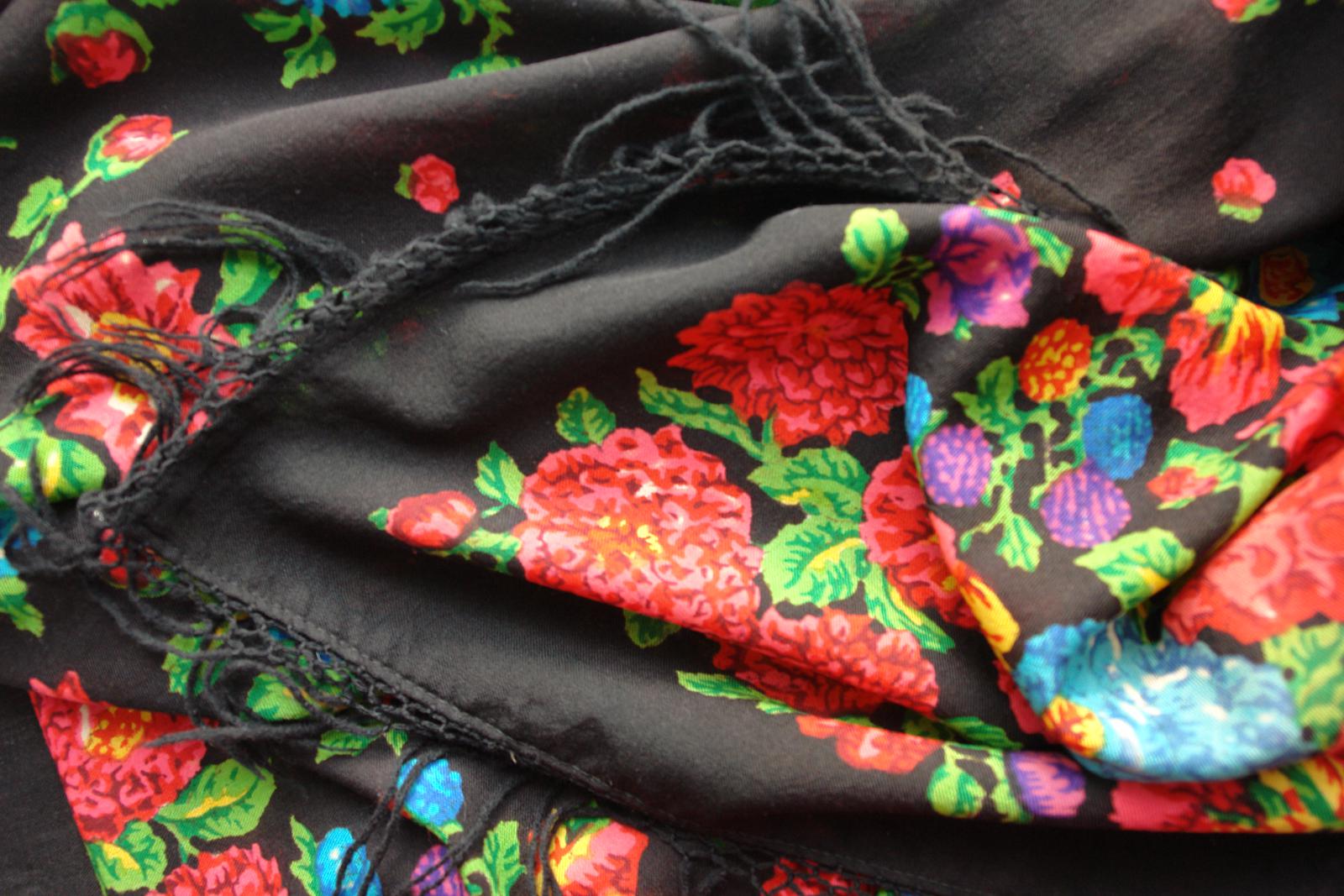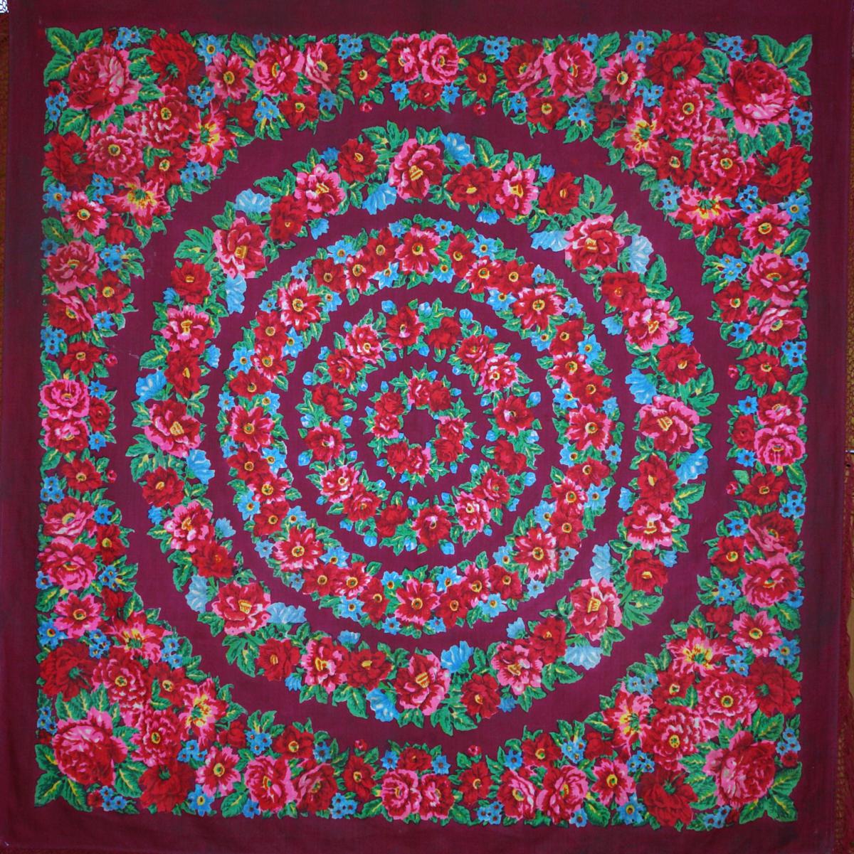 Добавлю несколько фото недавно купленного платка. Размер 125х125. Бахрому шерстяную я сняла.