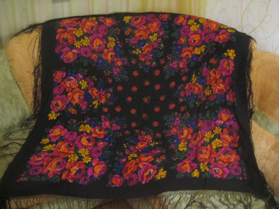 2) Второй лоскут - это шаль "Качели", под номером ППД_65 из нашего архива. Кайма черная.