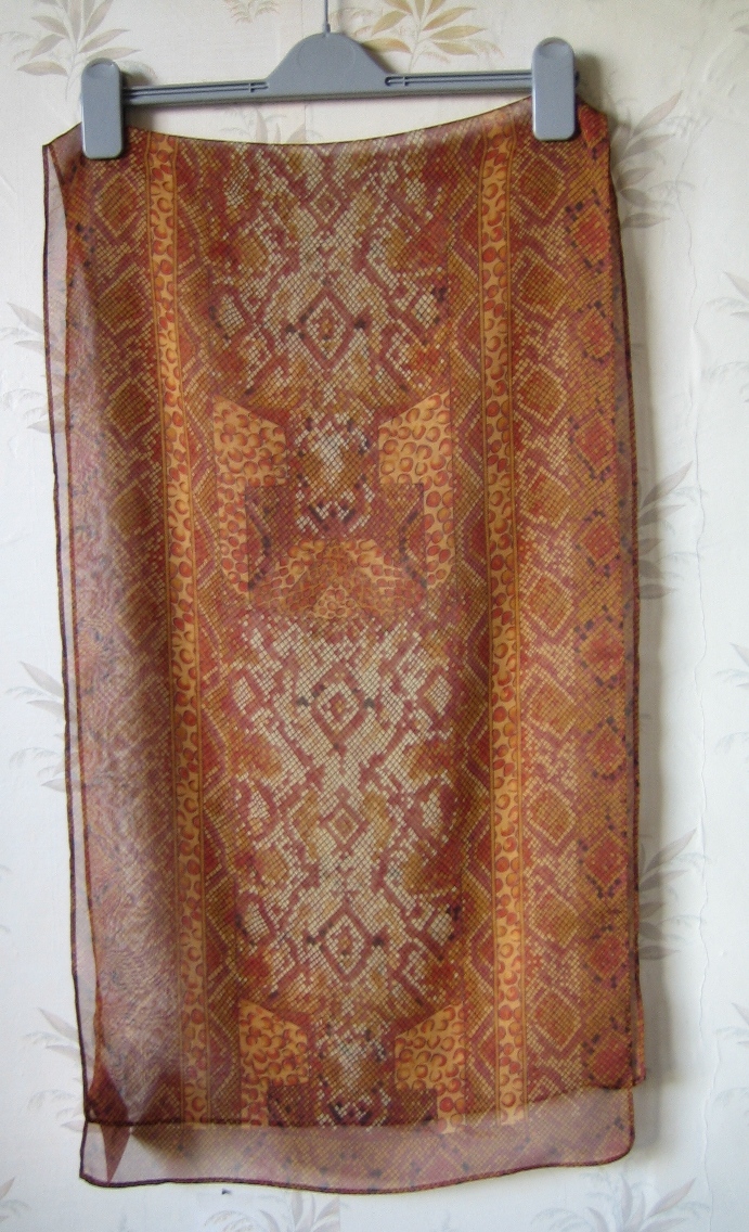 Оч. симпатичный шарфик. Но...хочется поярче, ближе к рисунку шкурки питона... :"