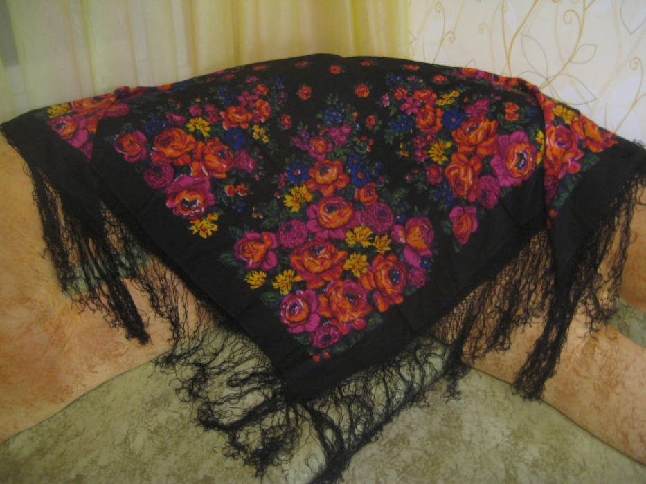 2) Второй лоскут - это шаль "Качели", под номером ППД_65 из нашего архива. Кайма черная.