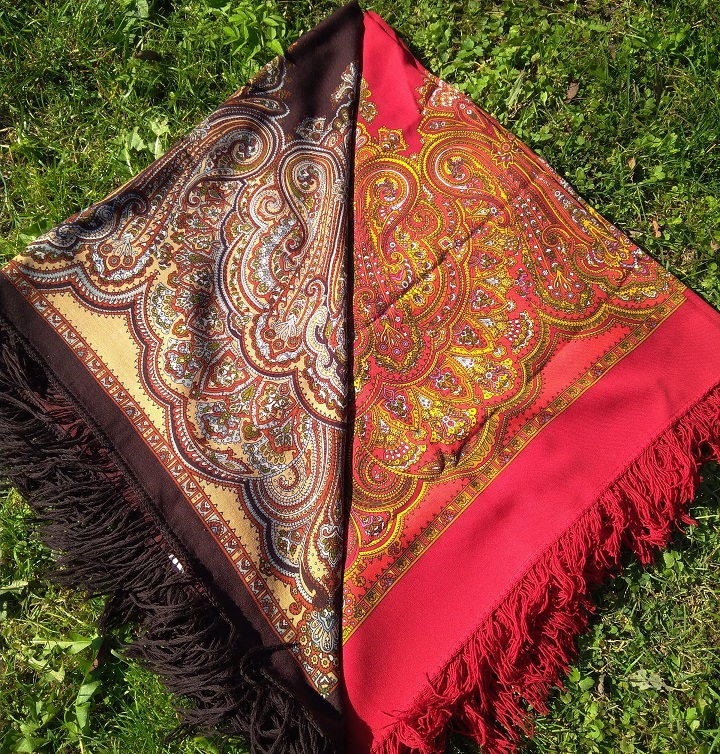 В ожидании своих новинок и перекладывания платков в эти выходные обнаружился хор Турецких: два 5-х колорита и на шоколадном фоне( быть может и 17-ый(условно). Качество ткани у всех разное, ведь выпускались в разные года, самый теплый .пожалуй. шоколадный, но он мягкий .