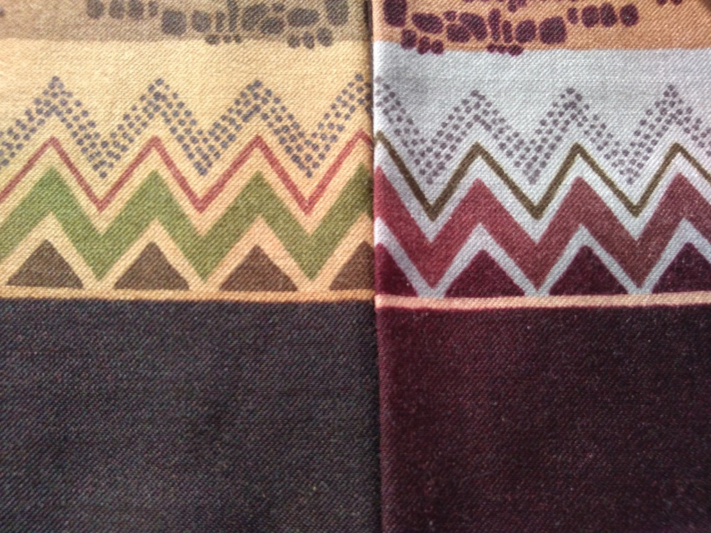 Грунт в этих шалях виден только на кайме. У Богатой невесты он чуть теплее, как топлёное молоко. И это можно заметить только по бахроме, приложив одну к другой при хорошем освещении. В остальном не то что соседка не отличит. Короче говоря, вполне можно обойтись одним вариантом.