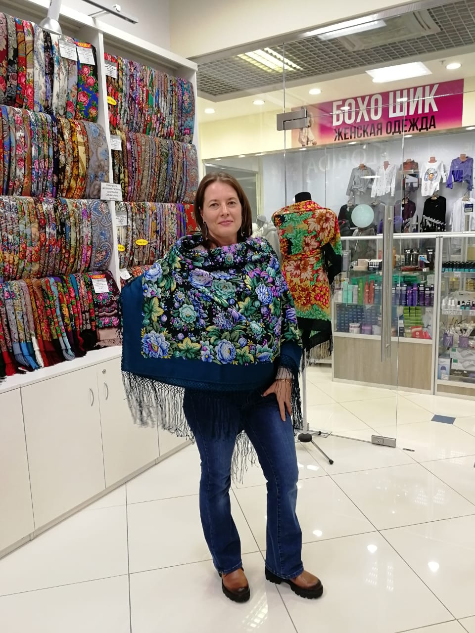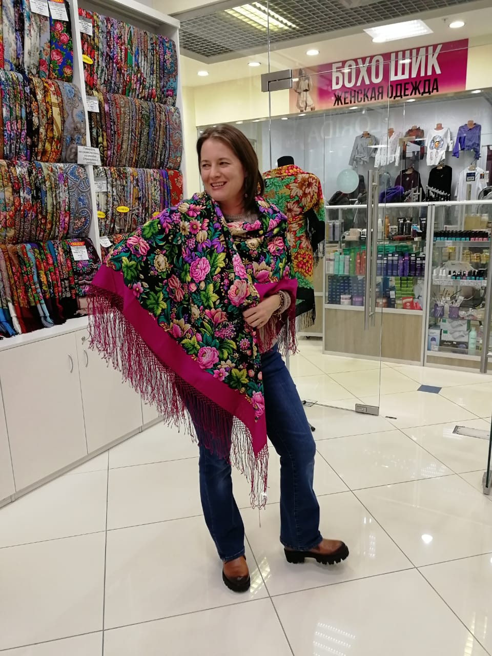 Первое фото с телефона, цвет шали передался достаточно точно, а лицо желтит. Всё-таки на камеру получаются гораздо более правдивые фото.