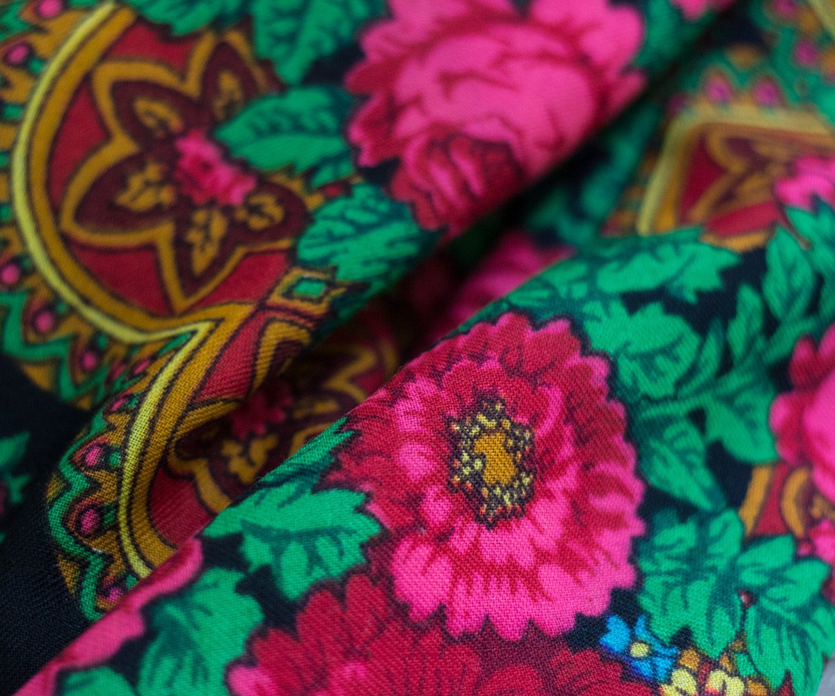Шмидтовский последнее потрясение. Мне кажется, явно просматривается изначально восточное происхождение рисунка - эти турецкие огурцы с расходящимися от них веером листочками, драгоценные камушки, веточки и пр. Видела подобное во многих набивных платках из Европы (полагаю, их и называют австрийскими), в форумном архиве таких тоже немало.