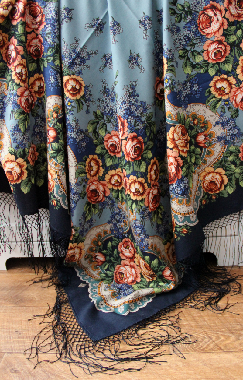 Единственная шаль с синей каймой в моей коллекции.