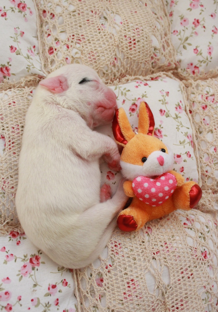 Беленькие боксеры в младенчестве имеют совершенно ангельскую внешность ))) По факту- крупные, активные, с отменным аппетитом, щенки. На фото беленькая Тильдина дочка, живет в Подмосковье.