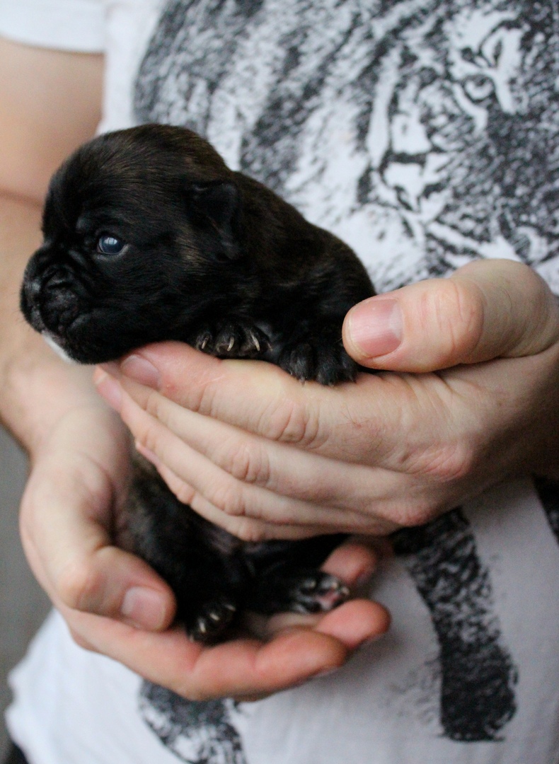 Такой крохотный щенуля, а уже боксер: всё как надо заложено.
